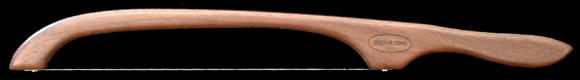 We make Yukon bread knives out of four hardwoods: black walnut, red oak, cherry and hard maple. A straight-grained board of the desired specie of wood is selected and the rough shape of the handle is cut from the board. Thereafter the handle is shaped and sanded until the final sanding leaves the handle with a polish as though it had been waxed. The handle is then hand rubbed with oil and buffed until a satin finish is achieved. Next, a stainless steel blade is attached with stainless steel screws. The stainless steel blade will neither rust nor tarnish over years of service. This stainless steel blade is serrated and hollow ground on both sides of the serrated edge and has a thickness of 0.016 of an inch. The combination of the serrated, hollow ground very thin blade allows the blade to cut bread, meat or vegetable with very little friction and hence very little effort. We suggest you keep your Yukon bread knife on your kitchen counter as it is not only decorative but that location makes it more convenient to use. Each Yukon bread knife comes with a cover for the blade when not in use. The Yukon bread knife has a number of uses for which it is uniquely suited such as: